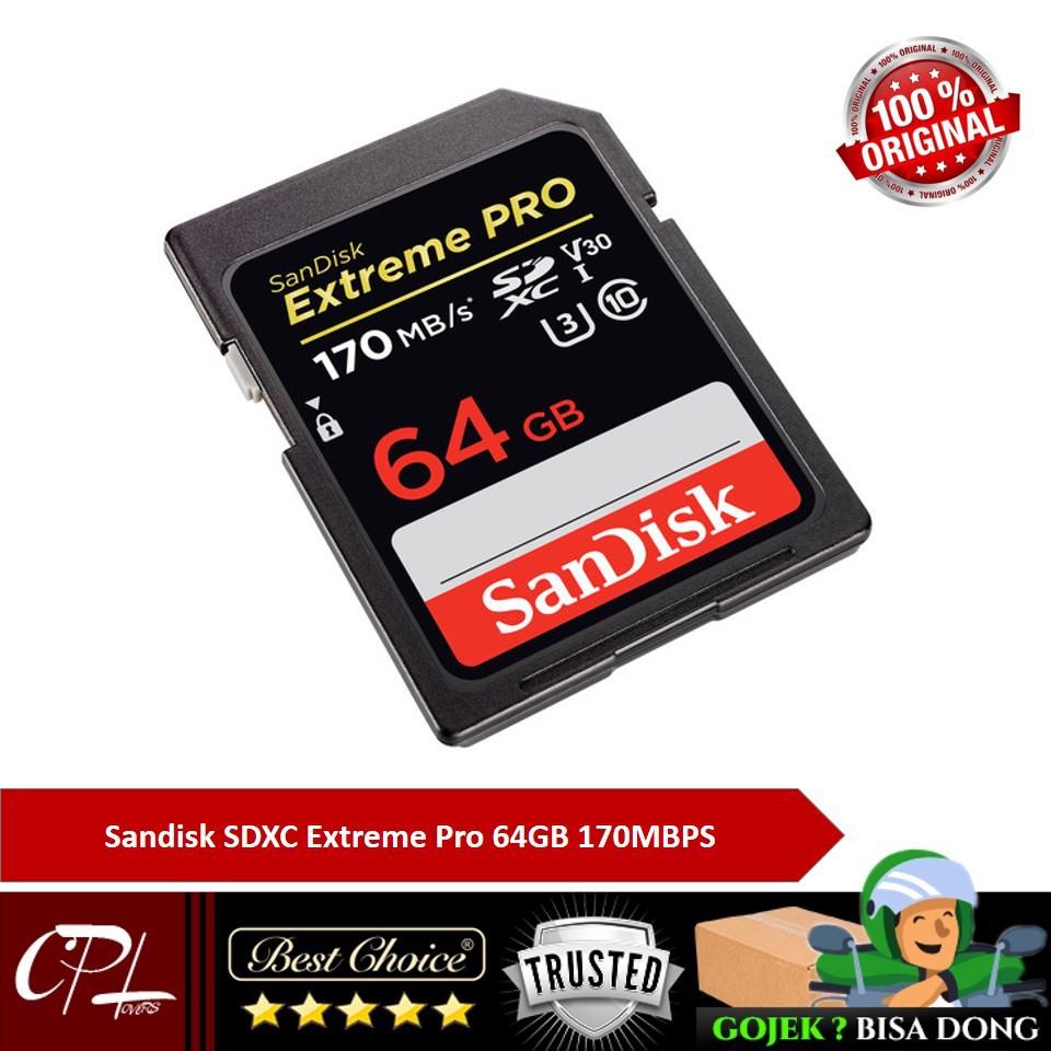 Sandisk sdsdxv5 128g gncin extreme 128gb sdxc uhs i u3 v30 up to 150mb s read 70mb s write memory card black. Sandisk extreme pro sdxc uhs i u3 v30 170mbs 64gb merupakan memory card paling powerful dengan kapasitas besar untuk memory sd uhs i menjanjikan kecepatan maksimal untuk peformance reliability dan menghasilkan gambar tanpa kompromi dan video uhd 4k dari kamera dslr hd video camera. Sandisk extreme pro a2 64gb microsdxc uhs 1 u3 v30 up to 170mb s read memory card with adapter sdsqxcy 5 0 out of 5 stars 2. Sandisk extreme pro 128 gb sdxc memory card 170mb s using inside a very good camera and it copes with 4k 50fps vide nicely.