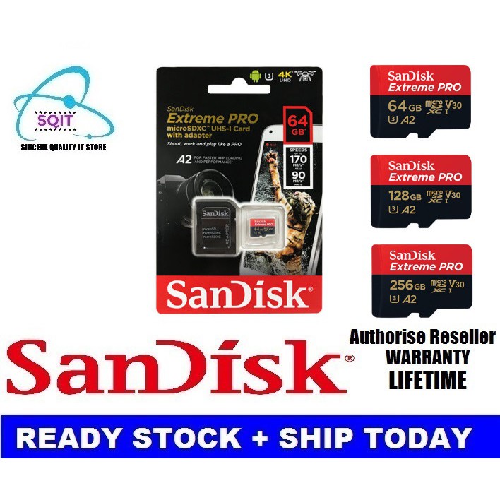 Sandisk extreme pro microsdxc uhs i card 64gb shoot like a pro on your smartphone tablet or camera with the sandisk extreme pro microsdxc uhs i card. Sandisk 128gb extreme microsdxc uhs i memory card with adapter c10 u3 v30 4k a2 micro sd sdsqxa1 128g gn6ma sandisk extreme pro microsdhc memory card plus sd adapter up to 100 mb s class 10 u3 v30 a1 32gb sdsqxcg 032g. Durable design for use in extreme environments sandisk extreme pro microsdhc and microsdxc uhs i cards are shockproof temperature proof waterproof and x ray proof 4 so you can enjoy your adventures without worrying about the durability of your. Is the seller of record and licensee in the americas of sandisk products.