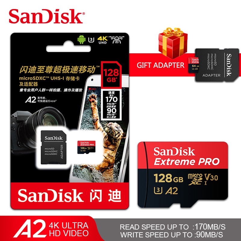 Get extreme speeds for fast transfer app performance and 4k uhd 2 ideal for your android smartphone action cameras or drones this high performance microsd card does 4k uhd video recording full hd video and high resolution photos. A z sandisk memóriakártyája az információk egy apró de biztonságos tárolója. Sandisk extreme pro 128 gb microsdxc memory card sd adapter with a2 app performance rescue pro deluxe 170 mb s class 10 uhs i u3 v30 red gold 4 8 out of 5 stars 15 209 19 99. βρες τιμές για sandisk extreme pro microsdxc 64gb u3 v30 a2 with adapter σε 41 καταστήματα στο skroutz.