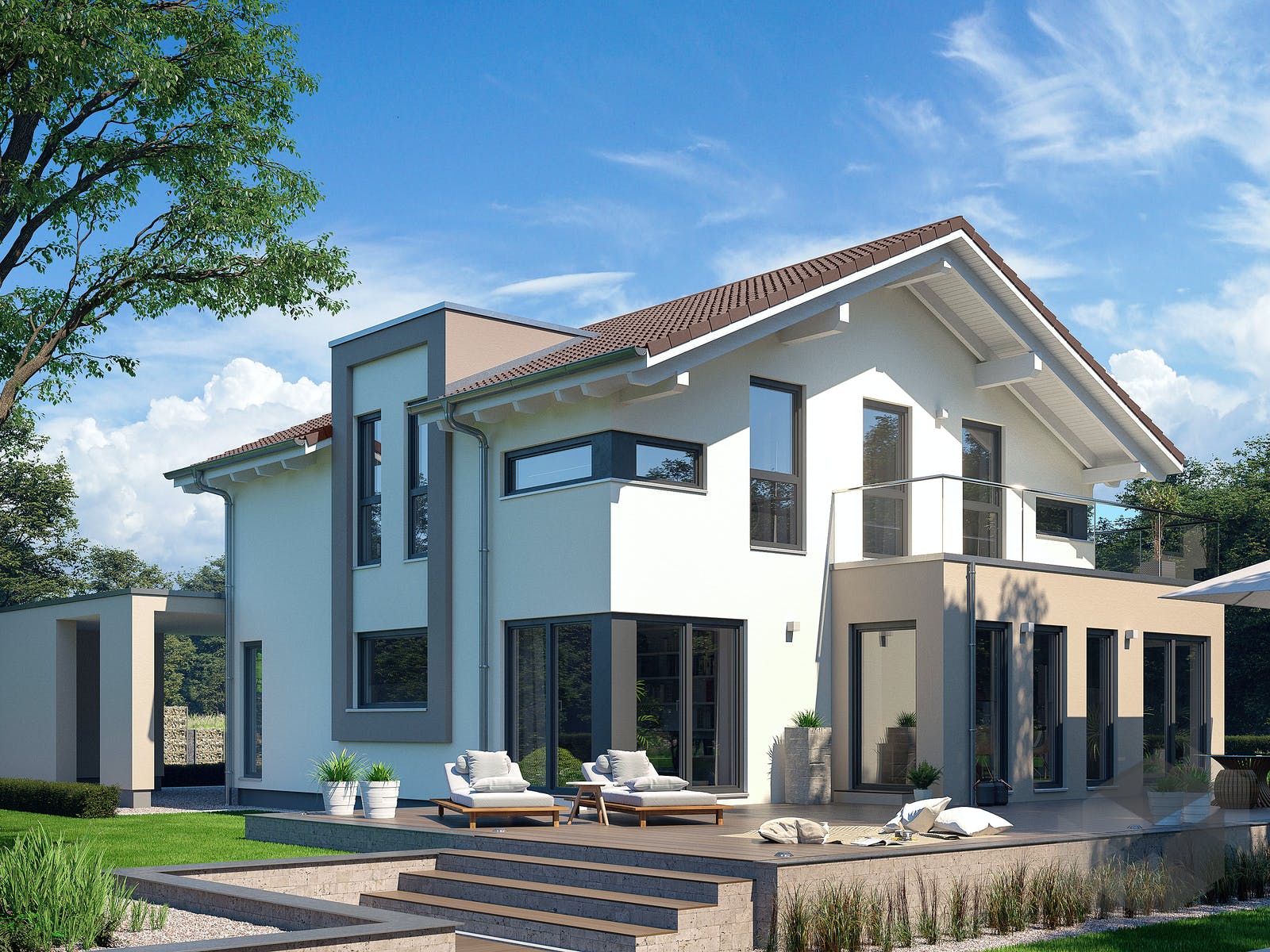 Einfamilienhaus mit flachdach übereck erker und integriertem carport. All inclusive konzept fertighäuser für jedes budget modulares haus system klima komfort haus rundum service. Solitaire e 145 e2 von schwabenhaus fertighaus einfamilienhaus 149 m wohnfläche 11 zimmer satteldach klassiker 2 etagen satteldach. Das unternehmen hat einen neuen standard für wohngesundheit und zukunftsorientiertes bauen geschaffen.