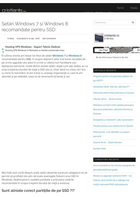 Cum facem curățenie și eliberare spațiu în windows de la an la an windows ul creste din ce în ce mai mult. Spre diferenta de hard diskuri ssd urile necesita anumite setari pentru a ne asigura ca ssd ul nostru va functiona la parametri optimi de performanta. Daca ti ai cumparat un laptop cu ssd sau ti ai facut un upgrade e bine sa stii ce setari sunt indicate pentru o viata mai lunga a ssd ului. Acasă am 3 gadgeturi pe care le folosesc cu windows 10.