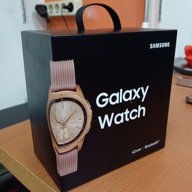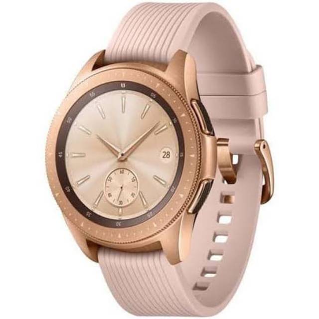 Smartwatch samsung galaxy watch 42mm rose gold. Galaxy watch is a smartwatch in black and rosegold color with 42mm size. Shop the samsung galaxy watch in rose gold. With a lengthy battery life you can manage many functions such as health monitoring or schedule management. Our newest smartwatch is everything you need on your wrist and with two sizes available the 42mm will fit you perfectly.