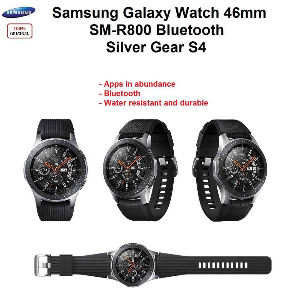 The samsung galaxy watch 46 mm has a much larger screen a 1 3 inch super amoled display with 360 x 360 pixel resolution it is protected by a gorilla dx glass. Galaxy watch is a smartwatch in silver color with 46mm size. Samsung smr800 sl galaxy watch 46mm silver pack of 1 5 0 out of 5 stars 3. Heaps better then any other smart watch on the market.