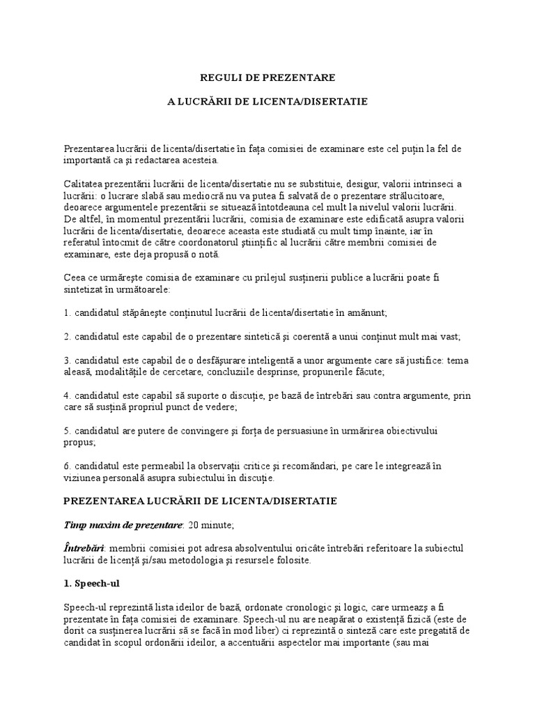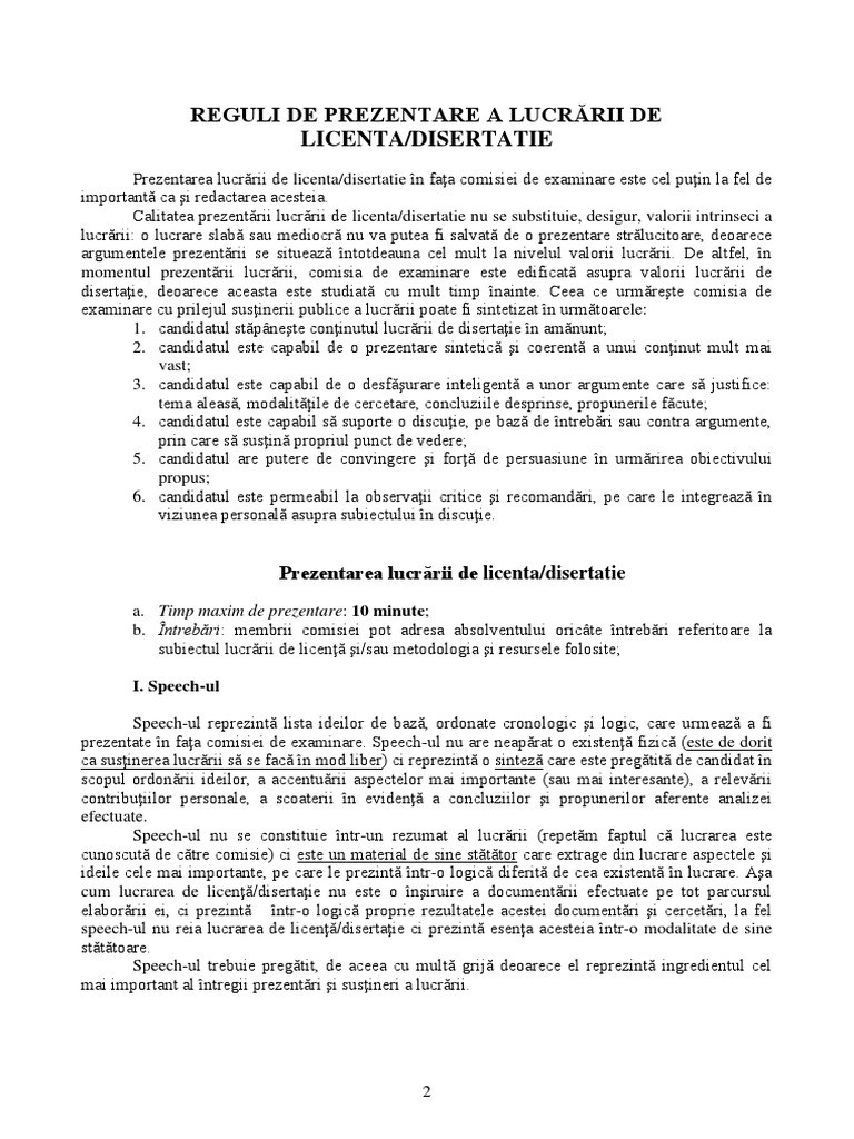 Speech ul reprezintă lista ideilor de bază ordonate cronologic şi logic care urmeazş a fi prezentate în faţa comisiei de examinare www lucrarelicenta ro.