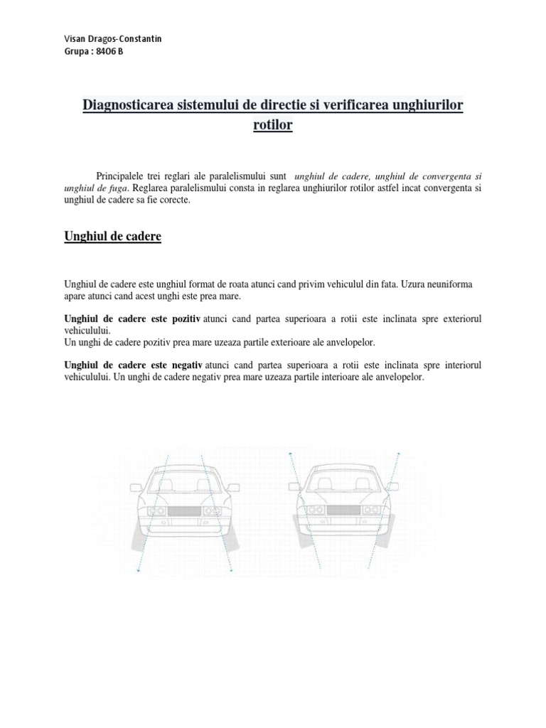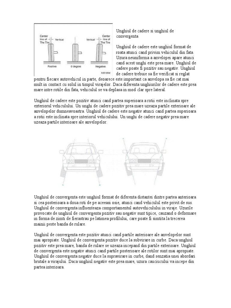 At 8 56 pm in. Unghiul de cadere este unghiul format de roata atunci cand privim vehiculul din fata uzura neuniforma a anvelopei apare atunci cand acest unghi este prea mare unghiul de cadere poate fi pozitiv sau negativ. Unghiul de cadere prea mare la o roata duce la uzura uniforma a pneurilor. Unghiul de cadere este pozitiv atunci cand partea superioara a rotii este inclinata spre exteriorul vehiculului.